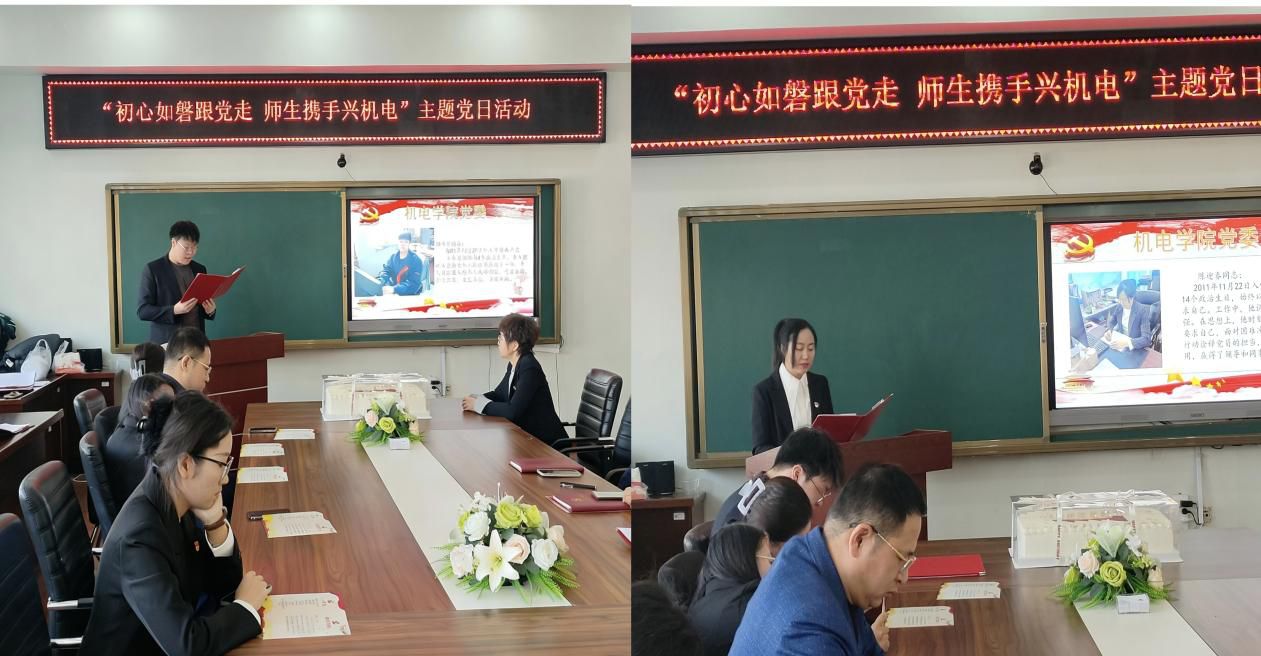 为进一步厚植党员党性根基,强化党员身份意识和党性修养,政治身份认同感,进一步凝聚奋进新时代的磅礴力量,不断激励党员干部不忘初心、牢记使命的责任感和使命感。12月18日,机电学院党委在图书馆608举办“初心如磐跟党走 师生携手兴机电”主题党日活动。活动由机电学院学生党员韩宗畅主持,机电学院全体党员参加。