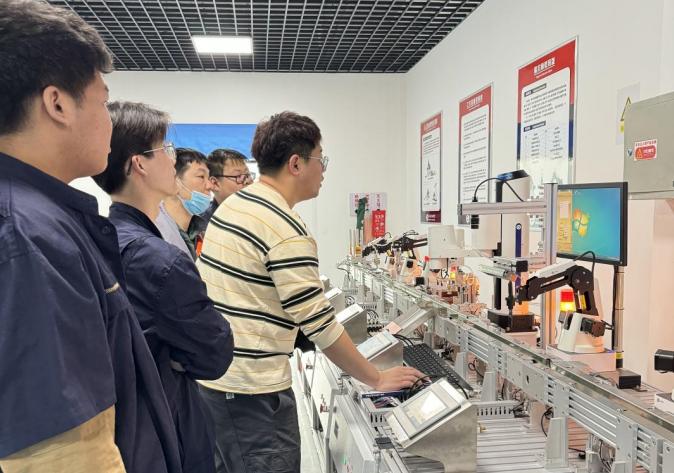 孙佳锐以“行业导师+技术教练”的双重身份全程带队。课堂上,他没有局限于理论讲解,而是结合越疆科技在协作机器人领域的实际案例,从“生产线布局规划”“机械臂精度校准”“传感器信号调试”三个核心环节入手,手把手指导学生操作。实操环节,在孙佳锐的引导下,学生们分组进行实验操作,他们认真观察、细致操作,不断尝试优化生产线的布局和流程。通过反复调试和实践,学生们逐渐掌握了机器人制造模块生产线的核心技术,提高了实践能力和解决问题的能力。此次实验不仅让学生们对机器人制造模块生产线有了更深入的了解,也让他们深刻体会到了团队合作的重要性。在实验过程中,学生们相互学习、互相帮助,共同进步。他们纷纷表示,这次实验让他们受益匪浅,对未来的学习和工作充满了信心。