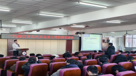 宣讲会尾声,机电学院党委副书记于海龙总结指出,解放青汽作为民族汽车工业的标杆企业,其技术创新精神与人才培养理念值得学子学习。希望同学们以此次宣讲为契机,树立正确的就业观,将个人专业所长与国家产业发展需求相结合,在民族品牌崛起的浪潮中实现人生价值。