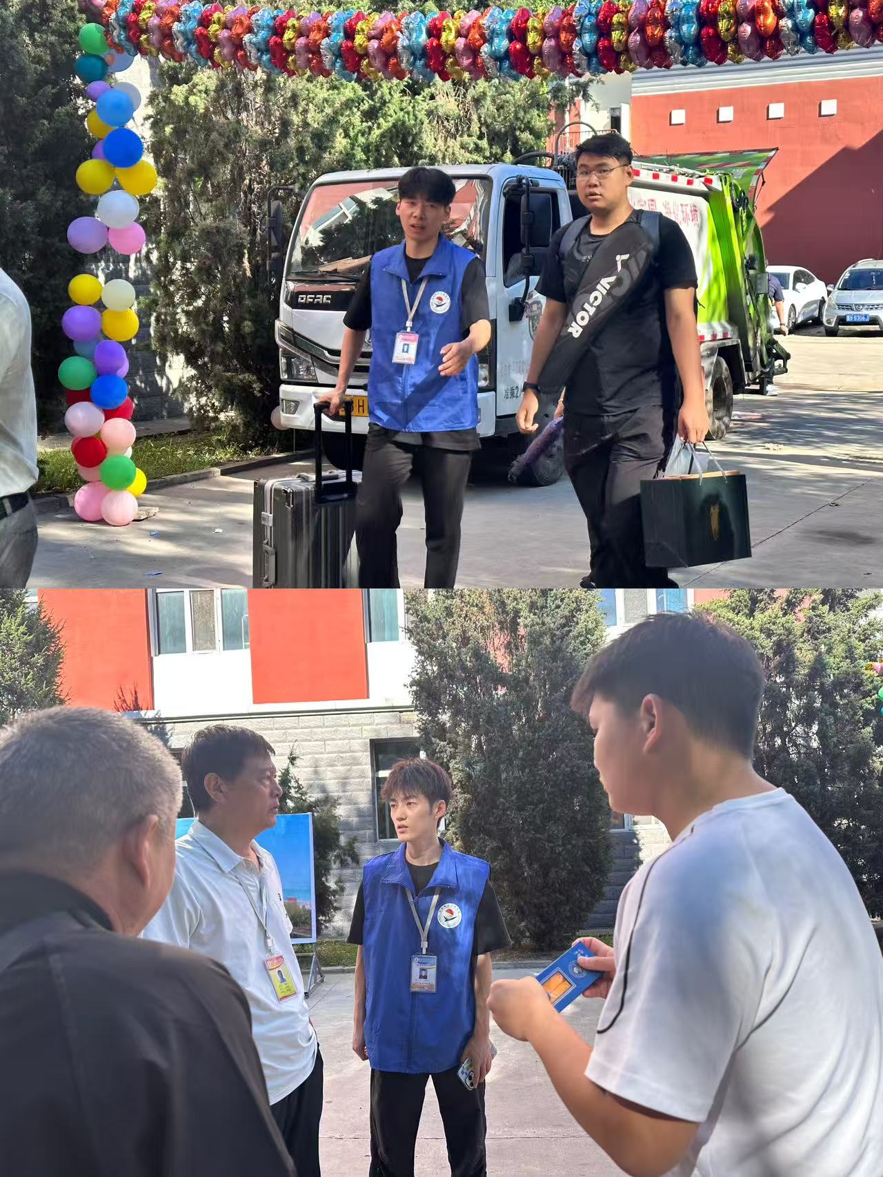 在五公寓与九公寓之间的主干道上,多名“蓝马甲”定点值守,成为流动的“指路牌”。由于新生报到集中,宿舍楼前出现短暂人流高峰,志愿者们及时引导分流,协助维护现场秩序。针对携带大件行李的新生,志愿者还用电动车来回运输,提供“点对点”搬运服务,用行动诠释“奉献、友爱、互助、进步”的志愿精神。