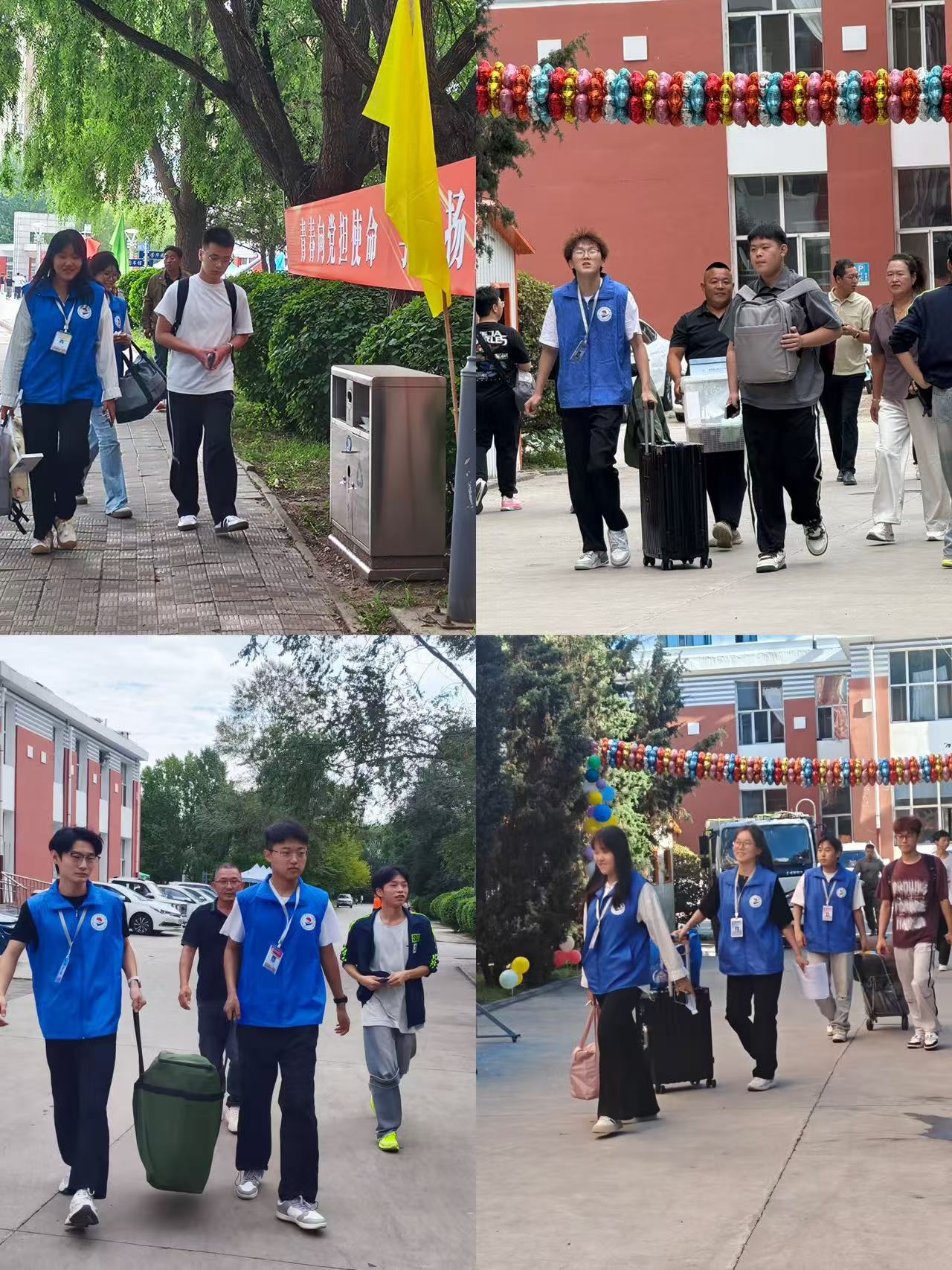 志愿者看到新生提着行李箱下车,主动上前帮忙,从报到登记到送抵宿舍全程陪同,让同学和家长倍感温暖。面对新生提出的问题,志愿者们结合自身经验一一细致解答,同时分享校园生活小贴士,帮助新生快速适应环境。