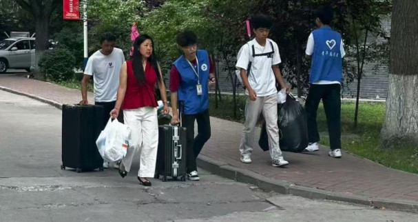 在学校南北区报到点,学长们耐心细致地为新生办理入学手续,新生住宿备品等物资,并详细讲解入学后的注意事项。不少家长陪伴孩子前来,他们一边帮孩子整理行李,一边与学长交流,眼中满是对孩子大学生活的期待与嘱托。