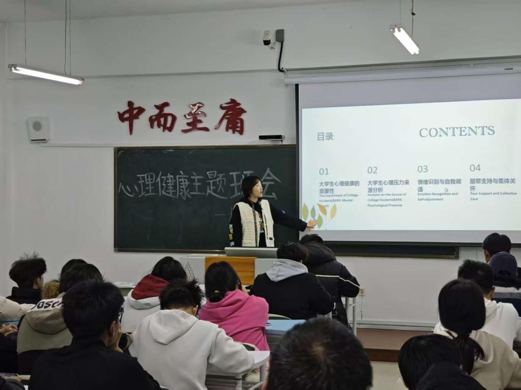 随后,周胜男老师结合当前大学生普遍面临的学习、生活、人际交往及未来规划等多方面压力,进行了深入浅出的来源分析。她通过生动的案例,帮助学生们识别常见的压力信号,理解压力产生的内在逻辑,使大家对自身的压力状况有了更为清晰的认知。