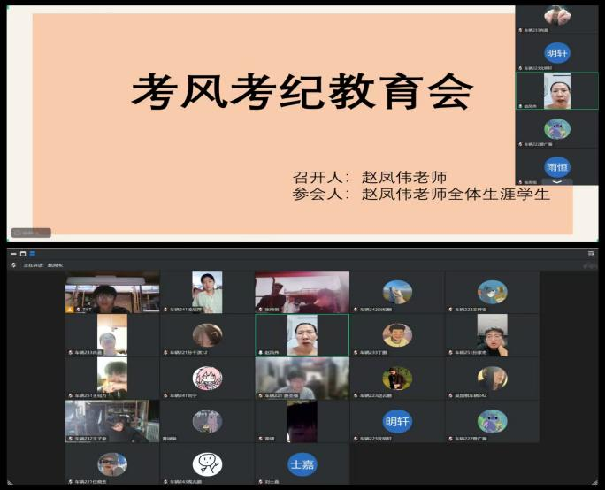 为进一步加强学风建设,严肃考试纪律,营造公平公正的考试环境,车辆工程专业生涯导师赵凤伟于12月8日晚7点举办线上考风考纪教育会。
