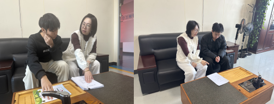 电气专业生涯导师毕再丽在汽车大楼K402室,分别对其生涯学生电气253李俊毅、电气251约提库尔·阿布都热合曼,分别对两名学生进行考前的考风考纪教育。