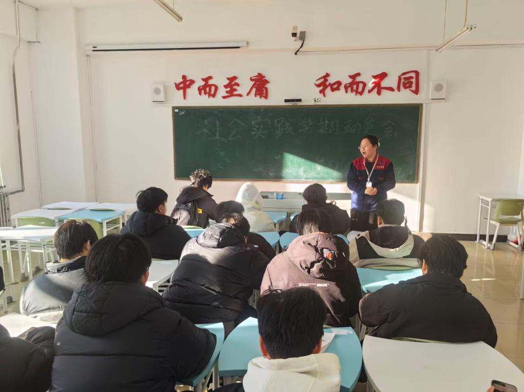 会议现场,汝晓艳老师站在讲台前,围绕社会实践的意义、实践内容规划、安全注意事项以及实践成果转化等方面展开讲解。她结合过往社会实践案例,生动阐述了社会实践对学生职业发展和综合能力提升的重要性,同时针对不同专业方向的实践重点给出具体指导,鼓励学生主动走出校园、融入社会,在实践中积累经验、增长才干。