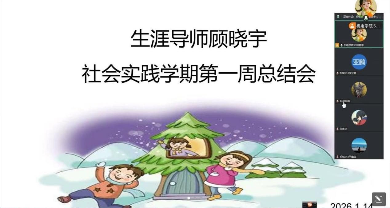 1月14日,生涯导师顾晓宇在线上组织所带学生开展社会实践学期第一周总结会,复盘实践初期进展,为后续实践提质增效。