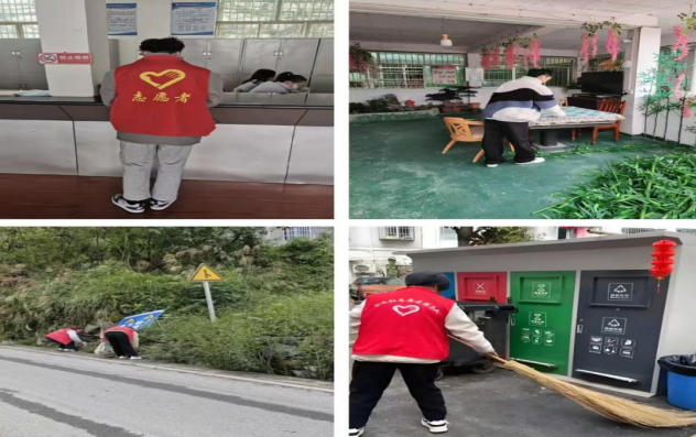 此次志愿服务涵盖多类场景,以实际行动传递温暖。在社区服务中心,王成缤身穿红马甲在服务窗口协助工作人员整理资料,为前来办事的居民提供引导,用耐心细致的态度践行志愿初心;张铂昆则来到社区老年活动中心,细心擦拭桌椅、整理绿植,为老人们营造整洁舒适的活动空间。在户外清洁现场,陈建行与黎艳手持工具,清理路边杂草与隐藏在绿化带中的垃圾,不放过任何卫生死角;王成缤与张铂昆则负责垃圾分类站点的清洁维护,仔细擦拭垃圾桶、清扫周边地面,助力社区环境精细化管理。