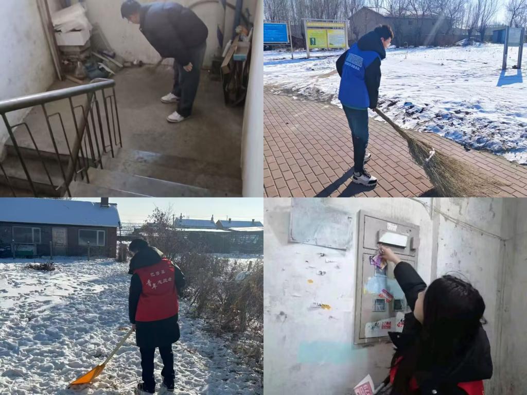 齐洪渤、郭佳轩则扛起扫帚、拿起铁锹,兵分两路开展清整工作。齐洪渤俯身清理楼道角落的废弃纸箱、塑料瓶等杂物,将堆积的垃圾一一打包清运,让原本杂乱的楼道恢复整洁;郭佳轩聚焦户外公共区域,迎着凛冽寒风清扫路面积雪,一下下挥动扫帚,将砖道上的积雪清理干净,为居民铺就安全畅通的出行路。刘昊手持雪铲,重点清理居民家门口、路口等易滑区域的积雪积冰,确保老人、孩子出行无忧。