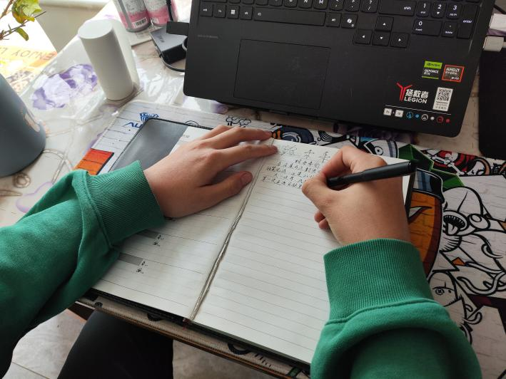 这张图片是宋安娜在书写致未来的信的场景,我本人觉得这个活动非常有意义,感谢学校给我们展现自己的机会,心里面的想法有很多,但是能说给别人听的又能有几个人,通过这次活动的开展,我对自己的未来不再迷茫,为自己规划好未来的路,步步坚定的走下去。