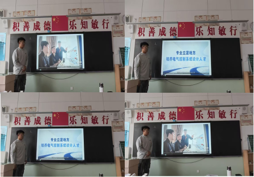 他以自身成长经历为线索,向学弟学妹们介绍了学校严谨的治学氛围、丰富的社团活动、“教学做合一”的育人理念及应用型人才培养特色,分享了“中而至庸、和而不同”的校训精神对自己成长的积极影响。在专业介绍环节,张睿远生动讲述了电气工程及其自动化专业的学习日常,从理论课堂、实验实训到项目实践与学科竞赛,并结合电气专业教师刘智等老师在学业与生活上的悉心指导,展示了专业实践的魅力和在新能源、智能电网等领域的广阔前景,帮助学弟学妹们拓宽了对大学与专业的认知。