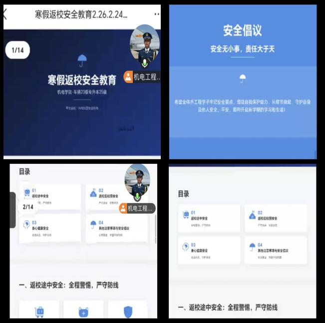 2月24日,辅导员徐飞老师通过线上平台召开“寒假返校安全教育”专题会议,面向车辆23级及车辆专升本25级全体学生,围绕返校途中安全、校园生活规范、身心健康调适等重点内容进行系统讲解与部署,为新学期平安有序开启奠定坚实基础。