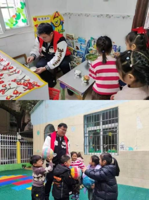 为助力幼儿成长,弘扬志愿服务精神。1月24日,cl2026014小组成员殷谨、刘祖豪、邓田宇前往江西省电建幼儿园开展志愿服务活动。志愿者协助老师维持秩序、看护幼儿活动,陪伴孩子们进行手工创作、绘本阅读、游戏互动等趣味活动,耐心引导幼儿养成良好习惯。