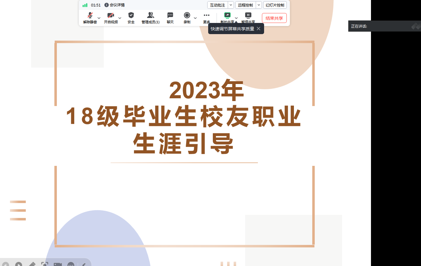 生涯导师陈建松通过腾讯会议在线为2018级毕业生召开了毕业生校友互动交流会议,全体2018级毕业生参加。