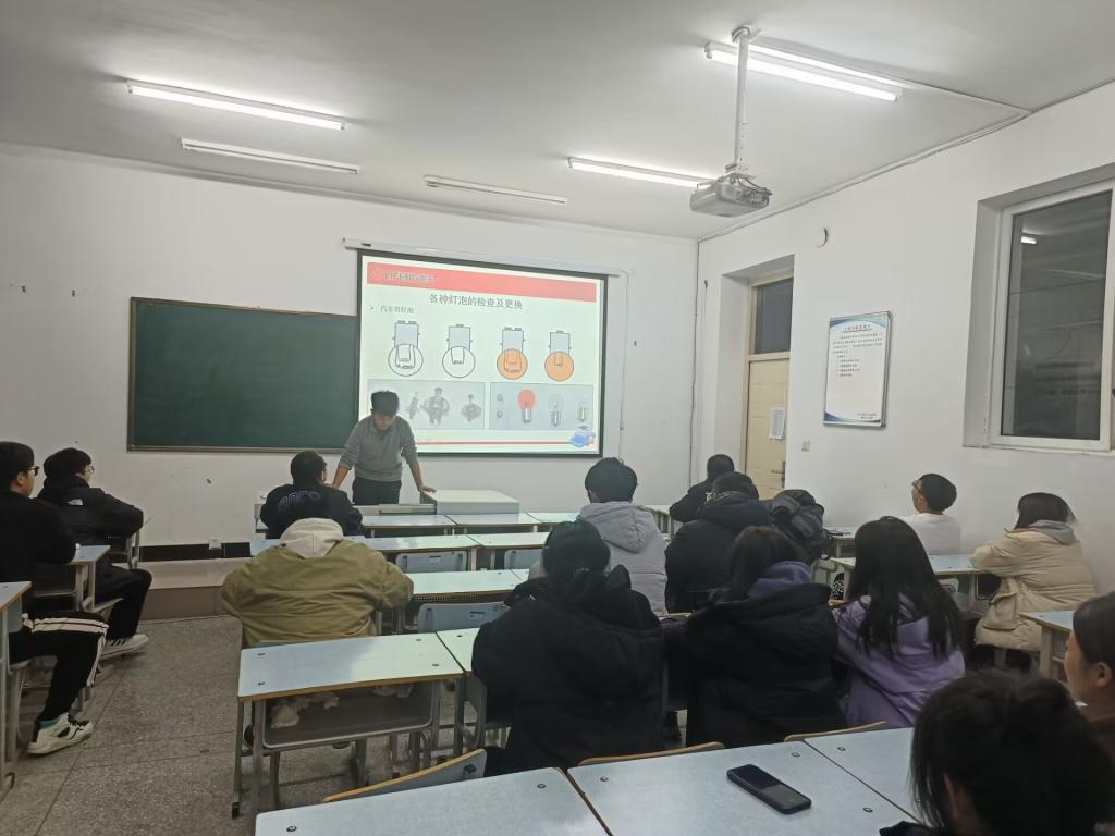 在此次的活动以ppt展示形式向学生们展现了生活中汽车的维修保养常识,以及汽车保养的过程,让外专业同学能够深入了解汽车结构与常识每个人都被其中 精彩的内容深深吸引。每个人都汽车产生了极大的兴趣。