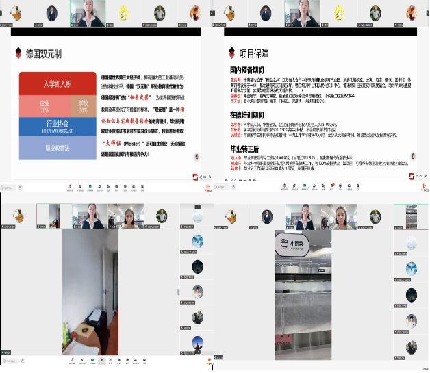 宣讲还特别介绍了中德双元制德国就业留学项目,并通过直播连线形式展示了中基产教实训基地的实景环境,包括实训中心、企业展示区、宿舍与食堂等功能区域,使参会师生如临其境,直观感受学习与生活环境。