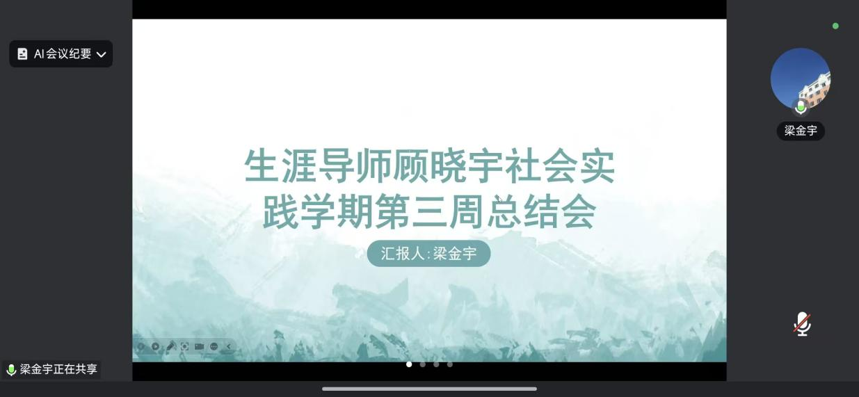 1月28日生涯导师顾晓宇在线上组织召开第三周实践学期总结会,顾晓宇老师聚焦“企业调研”“给未来的信”“青春FUN·肆拍”三大核心实践任务,全面梳理阶段进展,靶向明确优化路径。