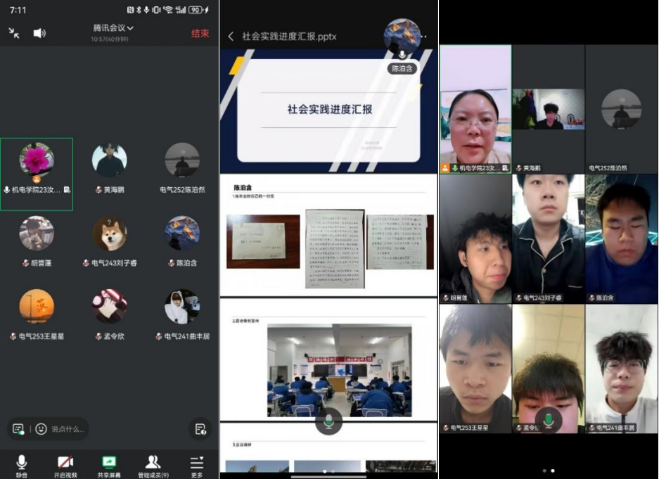 会议上,汝晓艳老师对本周实践工作开展情况进行全面复盘,各团队代表通过PPT形式生动展示实践全貌。重点关注学生对前三周指导意见的落实成效、实践任务的攻坚进度,对存在的问题进行答疑,并指导学生开展社会实践学习活动。